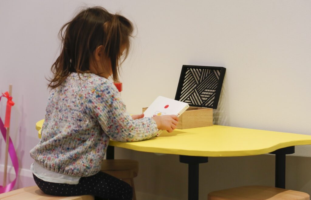 Plutôt que de reléguer les plus jeunes à la marge de l’expérience artistique, Langage Plus choisit de les considérer comme des publics à part entière. La Brigade du fun propose ainsi une présence active, ludique et attentive, assurée par des personnes formées à la médiation et au travail auprès des enfants. Grâce à des outils d’investigation artistique — jeux de mémoire, casse-têtes, cubes, dessins, discussions et petites activités spontanées — tout est mis en œuvre pour transformer le temps d’attente ou de déambulation en un moment agréable.